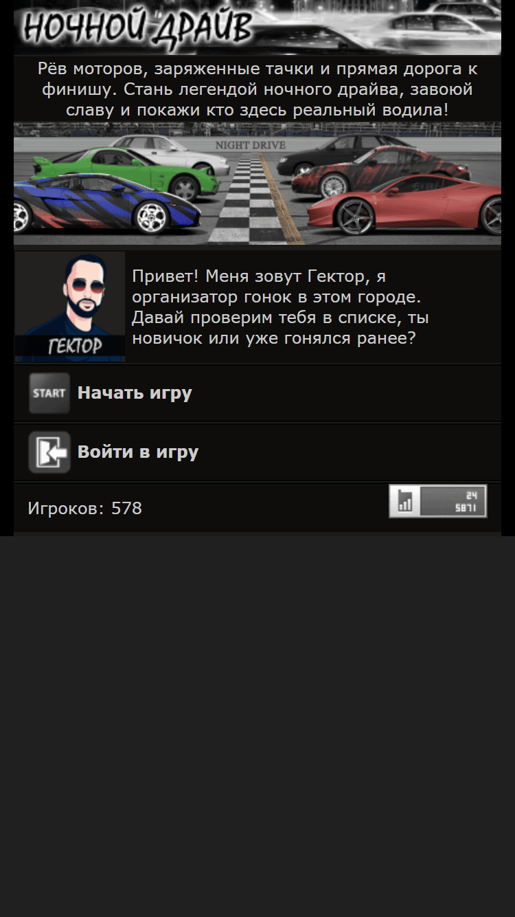 Рёв моторов, заряженные тачки и прямая дорога к финишу. Стань легендой ночного драйва, завоюй славу и покажи кто здесь реальный водила!