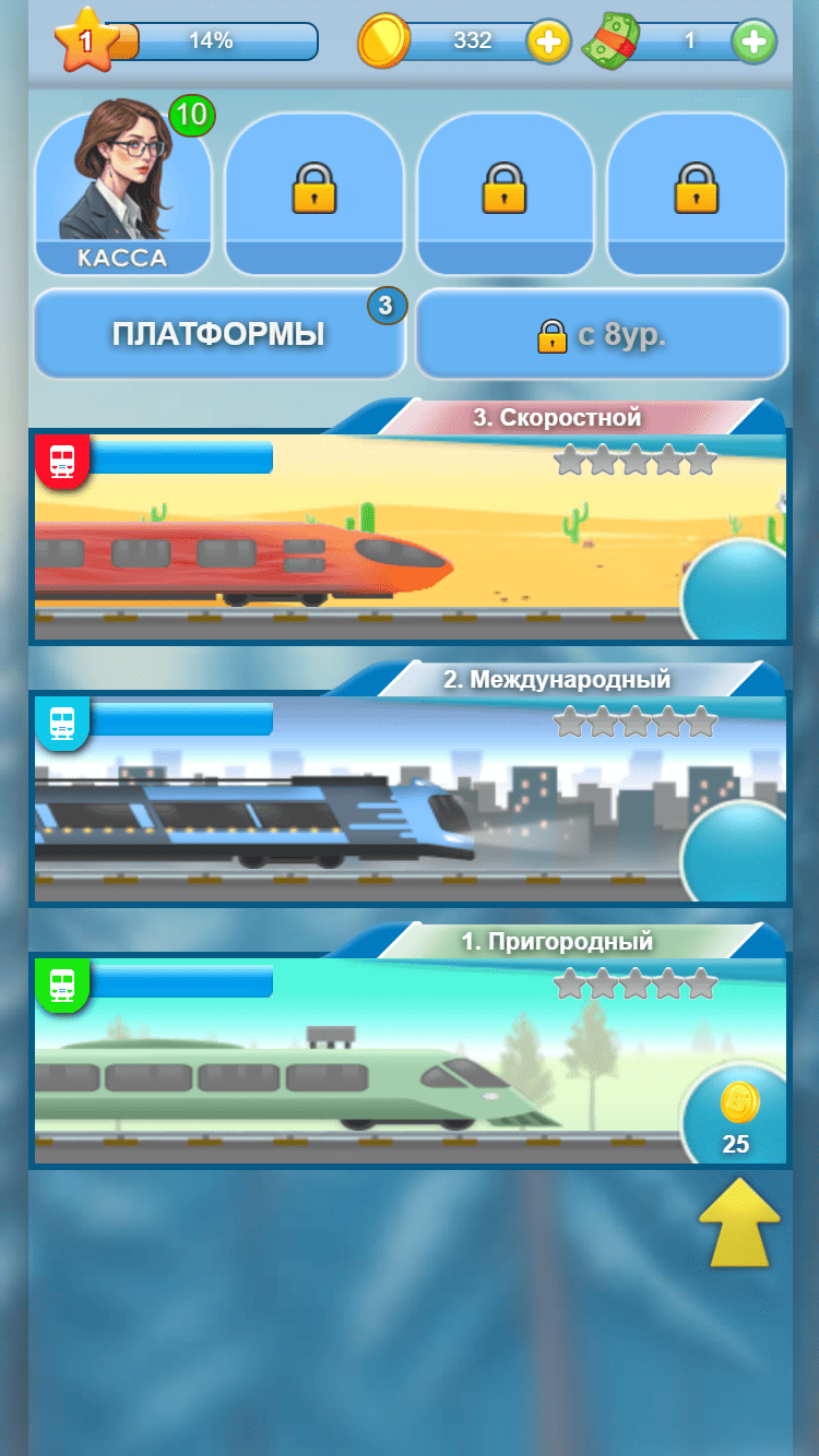 Тебе предстоит создать свою собственную железнодорожную империю: ты будешь продавать билеты пассажирам, строить и обслуживать железнодорожные платформы, развивать сопутствующие бизнесы (такси, отель, кафе, банк, ...), ремонтировать поезда в депо и, конечно, выполнять задания и соревноваться, что явно не даст заскучать. Для общения предусмотрены чат и форум, а для игры с друзьями в команде предусмотрен альянс (клан).