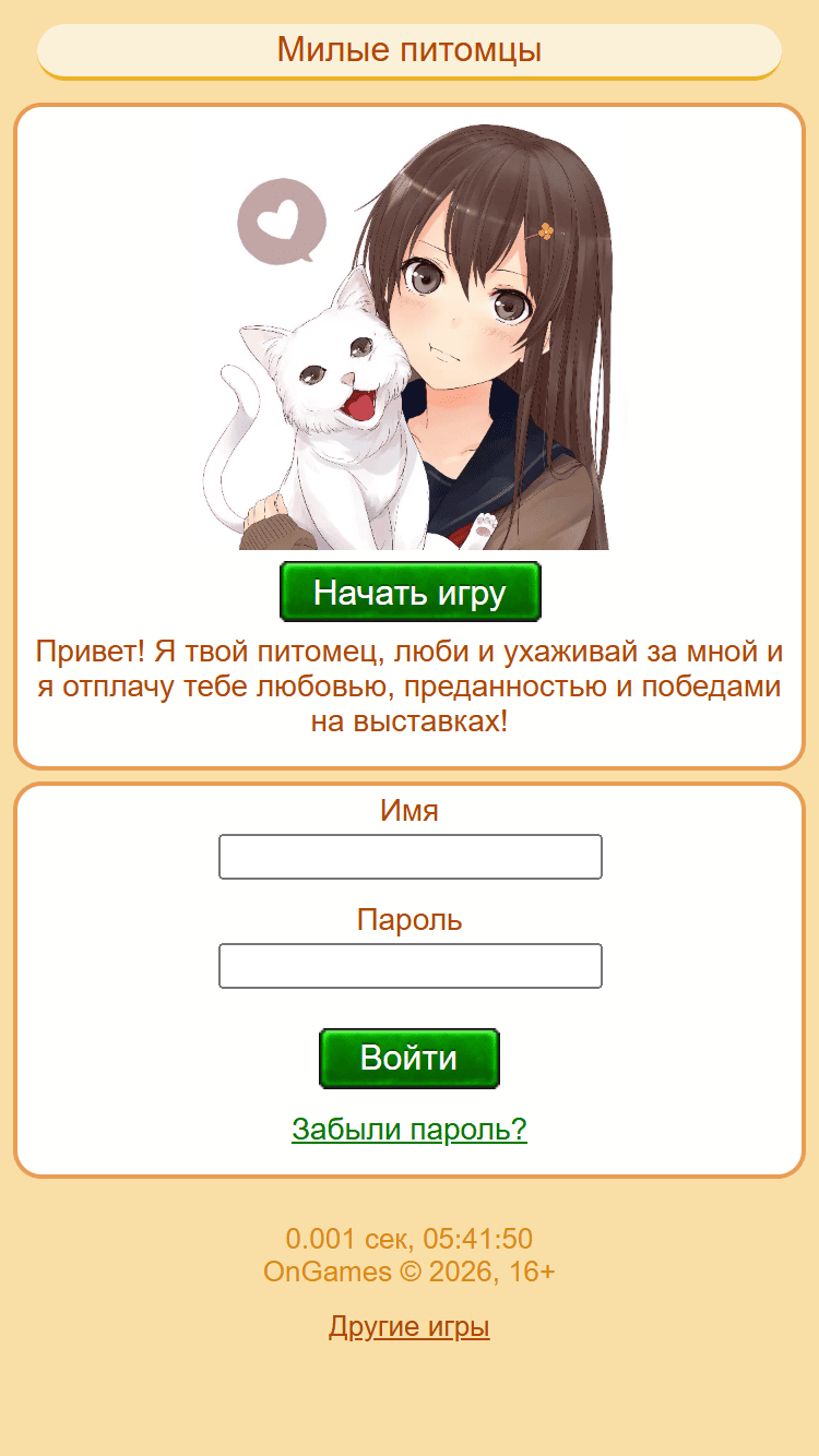 Если любишь домашних животных, то онлайн игра Милые питомцы как раз для тебя. Заведи питомца и выращивай его со всей любовью и ответственностью. Если ты покажешь себя хорошим хозяином, то получишь более редкого любимца.