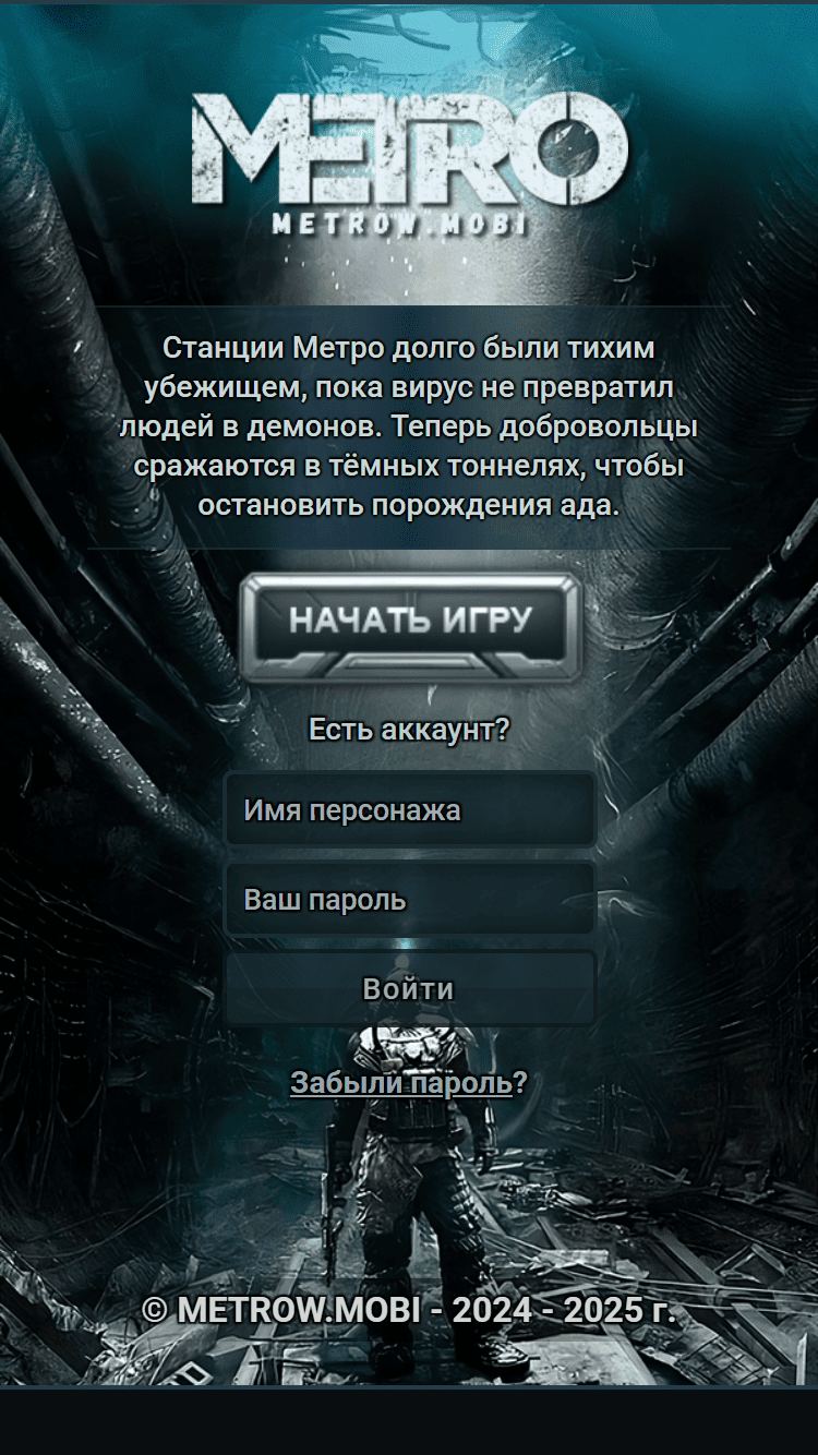 На станциях МЕТРО царил мир и спокойствие, пока учёные не изобрели вирус, порождающий демонов и монстров. Теперь добровольцы должны сражать ся под землёй и уничтожить порождение ада! Спустись в МЕТРО и встреть различных монстров на своём пути!